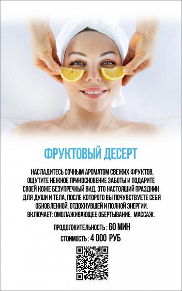 Фруктовый десерт 60' – 4000 руб (обертывание, восстанавливающий массаж)
