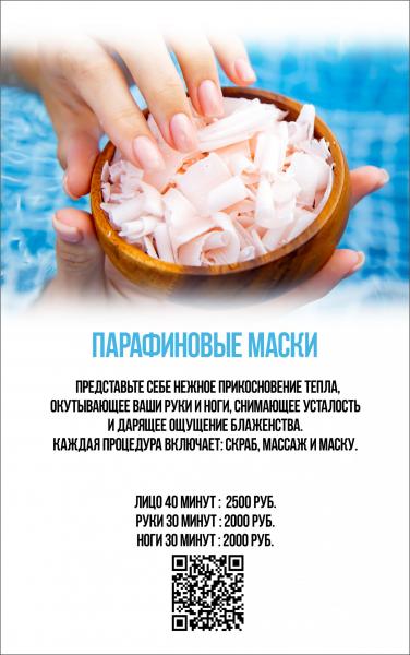 Нежность 60' – 4000 руб (пилинг, экспресс-массаж, парафиновая маска рук и стоп)
