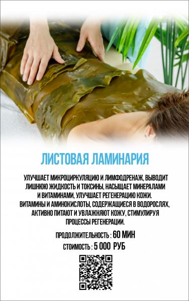 ЛИСТЫ ЛАМИНАРИИ обёртывание 60' – 5000 руб(+увлажнение)