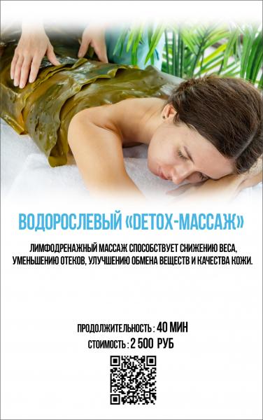 Водорослевый «детокс-массаж» 40' – 2500 руб(массаж + обертывание)