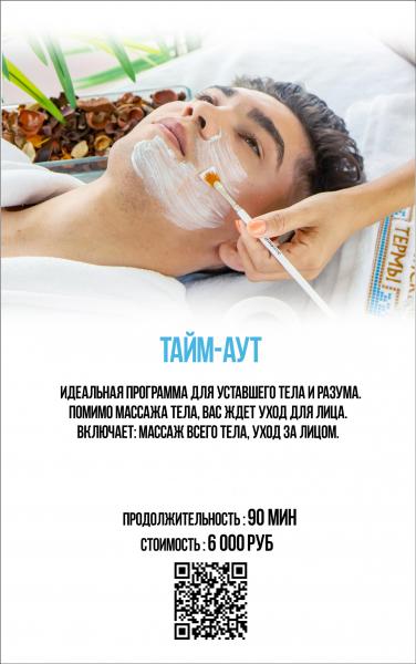 Тайм-аут 90' – 6000 руб (массаж тела и уход за лицом)