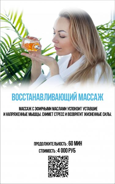 Восстанавливающий 60' – 4000 руб (массаж с эфирными маслами)
