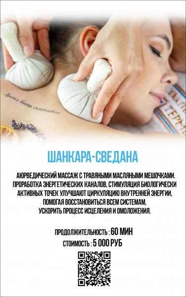 Шанкара-сведана 60' – 5000 руб(массаж травяными масляными мешочками)