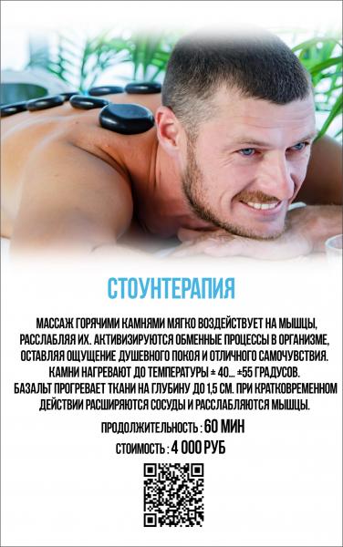 Стоунтерапия 60' – 4000 руб (массаж горячими камнями)