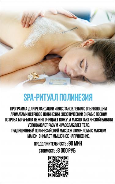 Бронь услуг СПА осуществляется по предоплате не менее 50%